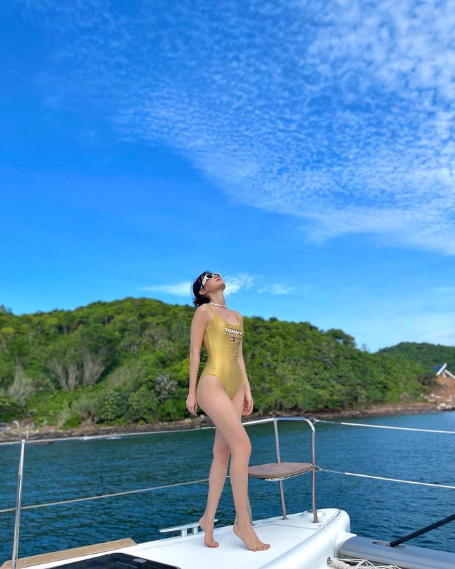 Tranh thủ chuyến du lịch hưởng "VitaminSea" cùng bạn trai, Sun Ht cũng nhanh chóng có cho mình những shoot hình show body không chút mỡ thừa cùng bộ bikini rực rỡ